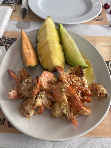 Read moreEin nettes kleines Restaurant, das gut besucht war. Man kann entweder drinnen sitzen oder draußen auf einer geschützten Veranda (bedauerlicherweise sind meine Fotos teilweise missglückt). Mein Mann hatte das Steak und einen Tomatensalat, beides nichts Außergewöhnliches, einfach guter Standard. Eine echte, positive Überraschung hingegen war mein Salat mit Garnelen. Es kam ein Teller mit einer guten Portion gegrillter Garnelen, lecker gewürzt mit viel Knoblauch und der Länge nach aufgeschnitten, sodass man die Schalen gut mit Messer und Gabel entfernen konnte. Dazu gab es je ein großes Stück frische Ananas und Melone, in mundgerechte Scheiben geschnitten. Kein Gemüse. Unter "Salat" hatte ich mir eigentlich etwas anderes vorgestellt, aber es war wirklich sehr gut! Sie haben übrigens auch ein großzügiges Angebot an frischem Fisch, der auf der Speisekarte mit Kilopreisen aufgeführt ist, sodass der tatsächliche Endpreis natürlich schwer zu...