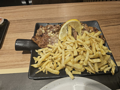 Read moreServiço rápido e sólido, o empregado que nos atendeu fez bem o seu trabalho. O ambiente é agradável, e o estabelecimento tem mesas no exterior para dias mais frescos e no interior para noites frias como a que se passou no dia da nossa visita. A nossa comida, no entanto, não foi incrível. Embora não tenhamos saído de barriga vazia, não termos queixas do lombo de porco, e o filé de espadarte estar delicioso, as batatas cozidas normais (que segundo o menu deviam ser doces) que acompanhavam o espadarte estavam frias e insonsas, e os legumes salteados estavam envolvidos em azeite a um ponto de se tornarem demais para acabar de comer. Além disso, as costeletas estavam muito salgadas. No fim, estou disposto a dar ao restaurante uma nova tentativa no futuro, e experimentar o que mais ele tem para oferecer. Por agora, no entanto, fica um OK. Foi razoável,...