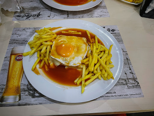 Read moreFoi me recomendado por diversos amigos e companheiros de trabalho, especialmente pelas suas francesinhas de tirar o fôlego e principalmente tirar a fome... Fiquei bastante agradado pelo prato que pedi, a francesinha especial da casa, com tudo a que o cliente pode ter direito mais um ovo e camarões por cima. Os camarões definem o toque de gênio do chef que perfaz estas excelentes iguarias. A bebida um fino regular. De entradas foi um pão com queijo básico, sem nada a dizer. Ponto negativo, e razão por dar apenas 4 estrelas, tenho a referir a demora do serviço, não sei se pela casa ainda se estar a habituar a ter de novo as portas abertas pós covid, se por outra razão, mas o que é facto é que as entradas demoraram muito tempo a vir e as francesinhas demoraram mais de 1hora. Para um restaurante com tanta qualidade, devia de ter mais atenção neste ponto. Staff simpático sempre pronto a ajudar. Irei voltar com certeza e irei recomendar o...