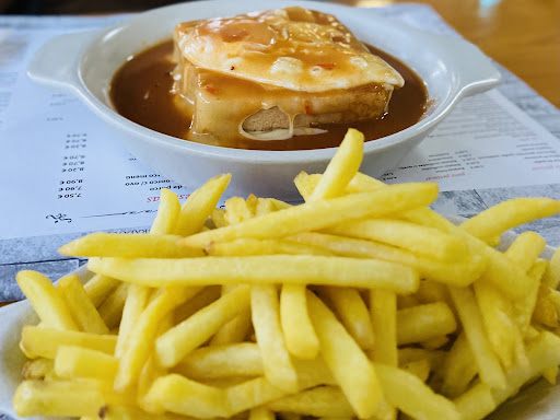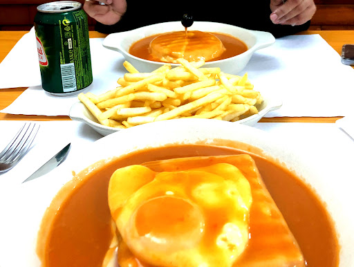 Terminamos a nossa estadia de 3 dias em Ovar jantado aqui. Foi claramente a prova que "no melhor pano cai a nódoa". Tudo correu bem, nesta maravilhosa e acolhedora terra, até termos tido a não muito feliz ideia de experimentar aquelas que alguns apelidam de "as melhores francesinhas de Ovar"... Nem de perto nem de longe. Em relação ao espaço, é um restaurante antiquado, claramente com clientes a mais para esta época onde o bom senso aconselha um (muito) maior distanciamento entre pessoas e mesas. Em relação à comida, serviram as francesinhas, confeccionadas com ingredientes pouco cuidados (p.ex salsichas de conserva) acompanhada por batatas fritas congeladas... Um de nós comeu feveras, perdão fevera, porque o prato só trazia uma... Urgente melhorar porque os preços praticados (9.30 euros por uma francesinha não é propriamente barato) não estão de acordo com a qualidade e o ambiente oferecido. Ah, é verdade, não aceitam MB... Um "must" nos...
