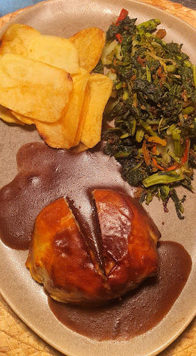 La peor experiencia culinaria en mucho tiempo. Pedimos un solomillo Wellington y un rodaballo con arroz. Al cabo de un rato vinieron a decirnos que no había el pescado. Pedimos un arroz en su lugar. Minutos después tampoco lo había. Pedimos dos entrantes como alternativa (tempura de langostinos y sopa de pescado) y su reacción fue proponernos de forma insistente un pescado la brasa para dos. Dijimos que no. A la hora y media, tras idas y venidas del personal evitando el contacto visual con nosotros, les llamamos para decirles que nos estaba pareciendo demasiada espera (ya habíamos acabado la botella de vino), nos preguntaron qué habíamos pedido... Diez minutos después nos traen mis dos entrantes: 5 langostinos en pasta filo con un acompañamiento de verduras tipo wok (que no estaba malo pero no era lo propuesto) y una especie de crema de tomate (?) con tropezones de pescado, espinas y una pieza de plástico en forma de flecha que, según el camarero (que no pestañeó ante el hallazgo), sería del pescado... Con el tema de los microplásticos, igual ya se lo puede considerar una parte del animal... En fin... El Wellington, que llegó 20' después, podría haber dejado, por lo menos, un buen sabor de boca, sin embargo era un trozo pasado de carne empantanado en una salsa a base de Gravy malo. Intentaron arreglar el desaguisado cobrándonos un aperitivo que no habíamos pedido y las patatas que acompañaban el Wellington como un extra. Nos fuimos se allí sin una triste excusa. Una misión digna...