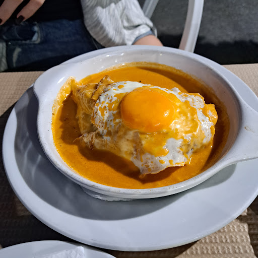 Poderia dar 6 estrelas se fosse possivel. Estive lá com minha esposa hoje, em nosso passeio de férias. Hoje completamos aniversario de casamento. Buscamos esse local na Internet, e acertamos na escolha! Pedimos um Pão de alho Doce Fino de entrada, foi preparado na hora (como tudo o que pedimos), este veio quente e estava muito gostos, e para os principais: pedi para mim uma Francesinha Especial. Minha esposa pediu um Prego no Prato. O molho da Francesinha veio borbulhando de quente, as fritas caseiras e quentes, no ponto. Bife do Prego estava muito macio, fritas igualmente bem feitas, tudo bem temperado e delicioso. Ambiente limpo e bastante agradável. Atendimento eficaz, ao modo português. Qualidade nota 10. SENSACIONAL. Certamente voltaremos e recomendaremos aos...