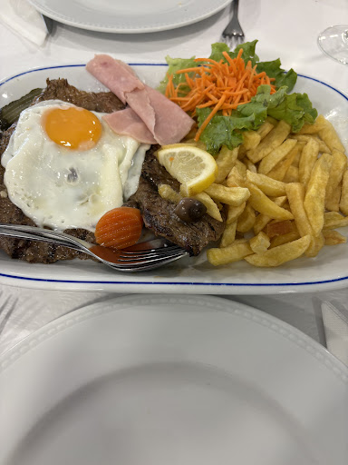 Read moreFuimos a cenar ya que nos hospedamos cerca, y la verdad el sitio merece la pena. Comimos a reventar y no pagamos mucho. Prego no prato, que se compone de un bistec, un huevo frito y patatas, luego pedimos una ensalada, y media dosis de churrasco. Todo riquísimo y los camareros muy amables. Eso sí, lo que aviso siempre, cuando viajas a Portugal, cuidado con el picoteo que te traen antes de comer con la bebida: aceitunas, mantequilla o pincho caliente, todo eso, si no pides que te lo retiren luego te lo cobran, es algo que no me gusta nada, pero que esta muy presente en la hostelería portuguesa, en cambio en España el picoteo que te traen con la bebida, es un detalle del local con el cliente de forma gratuita. En resumen, un sitio muy recomendable donde comer o cenar, gran cantidad, bien de precio y el...