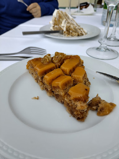 Éramos dois casais e pedimos 1 dose de bacalhau (30€) e uma dose de lombinhos de vitela com cogumelos (22,50€), a vitela estava boa, o único senão foi o facto de haverem nacos de carne muito altos e muito mal passados, mas pelo meio haviam alguns mais finos e bem passados, foi isso que safou a situação. Quanto ao bacalhau era uma bela posta grande e bastantes batatas, mas este está muito melado.