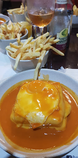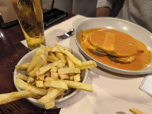 The Francesinha is a very typical plate, which is actually nothing else than a overpowered "croque monsieur", embedded with an special home made sauce, which consists of Mayonnaise , Ketchup , many sorts of Alcohol, which gives the Fransesinha in here a very authentic touch.