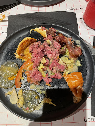 Read moreJá não é a primeira vez que frequento o estabelecimento, sendo que já vim junto com a minha parceira na casa dos dois dígitos das vezes que o frequentamos sem nunca nenhum problema, porém desde que a carta mudou parece que algo nele mudou também. A minha namorada empolgada com as mudanças na carta pediu para voltarmos lá e eu concordei, porém pela primeira vez na série de vezes que lá fui eles enganaram se no pedido que fizemos, onde a minha parceira pediu um hambúrguer sem pickles e o mesmo veio com pickles. Como não é um erro muito significante sendo que é apenas preferência dela e a casa nunca se tinha enganado em nada connosco deixámos passar. Porém da seguinte (e fica já dito última vez que venho ao estabelecimento) o erro foi mais significativo. Pedimos ambos o mesmo hambúrguer onde a única diferença é que o meu era o ponto da casa (médio/mal passado) e o dela era bem passado e sem pickles e cogumelos. O empregado leu-nos de volta o nosso pedido (para não acontecer o mesmo que se passou da vez anterior) mas parece que mesmo assim não funcionou, quando ambos vierem um veio sem pickles e o outro sem cogumelos, onde depois um deles era o ponto de cada um. Mal vimos aquilo dissemos à empregada o erro do pedido e a menina muito atenciosa perguntou se queríamos mandar para trás para deixar direito, mas como o erro dá para corrigir apenas retirando os ingredientes dissemos que não seria necessário e então eu fiquei com o que seria mais difícil de tirar o ingrediente, neste caso o que tinha cogumelos. Pois após comermos bastante do hambúrguer (que nota à parte de tanta gordura se desfazia todo) denotámos que o que eu estava a comer era o bem passado e o que a minha namorada comia era o “ponto da casa”. Como podem ver a baixo esse era o estado do hambúrguer que dizem ser o “ponto da casa”, completamente cru, de tal forma que consegue se ver ainda o branco da gordura em partes dele. Mal reparámos nisto fomos ambos embora e no ato do pagamento reclamámos com o (que eu assumo seja) gerente. A resposta que nos deu não foi muito longe de comédia: “Desde que mudamos a carta também alterámos a carne dos hambúrgueres para carne maturada, e no processo o pessoal que está na cozinha ainda ESTÁ A TENTAR ACERTAR NO PONTO DA CARNE”. Eu acho que esta desculpa é pior que estar calado e apenas se desculpar pelo erro seria melhor que o que disse na minha cara. Na conta final retiraram da conta as entradas que pedimos mas isso não justifica o estraga que causou. Neste momento a minha namorada por causa do hambúrguer que comeu está com uma gastroenterite e passou a noite na casa de banho e eu acredito que seja tudo culpa da “tentativa” que até estabelecimento fez. Consoante isto tudo peço que se não quiserem apostar com a vossa saúde não...