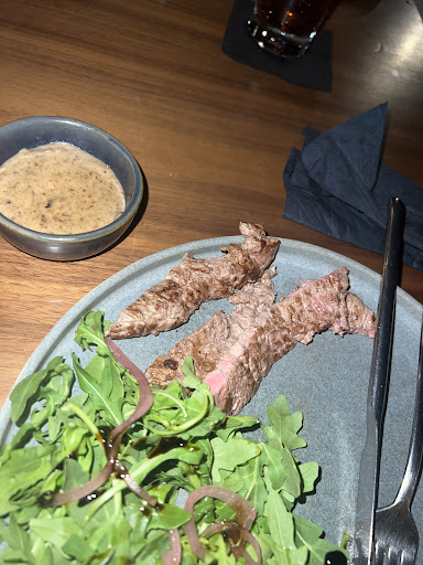 Read moreAs entradas até estavam agradáveis sem dúvida, o ambiente é razoável, no entanto, a comida estava fria, os bifes de nada aparentavam ou teriam sabor ou qualidade de black angus, foi feito o pedido com o molho de cogumelos, fazem a entrega do bife com molho de parmesão, levam para dentro, raspam o queijo e voltam a trazer com o molho de cogumelo meio misturado com o de queijo, foram infirmados que a pessoa que pediu o molho de cogumelos era altamente intolerante a lactose e em momento algum tiveram cuidado. Na terceira vez trazem um bife (o que está na fotografia) completamente seco e frio como os outros, esquecendo-se das batatas fritas no processo. Eventualmente passado 10 minutos trouxeram as batatas. A responsável que vem falar connosco, nem sequer trabalha nesta casa mas sim noutra e ainda afirma que não dissemos ao funcionário que a pessoa que recebe este bife nao pode ingerir lactose.