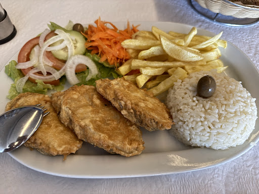Came here following a local recommendation and was not disappointed. Outstanding restaurant. Super friendly staff, very welcoming. Modern and simple decor, bright and comfortable. Pilgrims menu was great - bowl of olives and bread, soup, choice of main (I'd succulent barbequed chicken, came with real chips/fries, salad, and rice), fruit bowl for dessert, coffee and a bottle of water for 9 euro. Some of the tastiest food so far and that is saying a lot.. Waiter recommended a local vinho verde - lovely wine 1.50 a glass....
