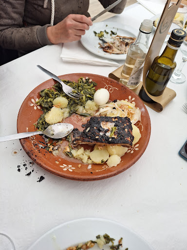 Niepozorna restauracja,do której weszliśmy z polecenia Polki - mojej szwagierki - pracującej i mieszkającj w sąsiedniej miejscowości. Trudno nam się było dogadać w języku angielskim (nazwy potraw nic nam nie mówiły - nawet te w j. angielskim), więc zamówiliśmy "w ciemno". Na jedzenie czekaliśmy długo (choć zajęte były tylko 4 stoliki), ale jak już dotarło na stół, to zrobiło piorunujące wrażenie. Zamawialiśmy owoce morza z rybą i warzywami w tradycyjnym naczyniu zwanym cataplana a dla dzieci "połówkę" porcji steku wołowego z frytkami. Czas oczekiwania umilały startery (oliwki, sery, pasty rybne). Do tego doskonale schłodzona butelka wina w koszulce termicznej zaproponowana przez obsługę. Przygody portugalską kuchnią nie dało się zacząć lepiej. Po 3 dniach wróciliśmy tam ponownie, ponieważ trudno nam było bez polecenia trafić do równie dobrej restauracji (łudziliśmy się, że może wszędzie jest takie dobre jedzenie). Ceny mogą wydawać się nieco wyższe niż w restauracjach obok, ale ta różnica jest niwelowana wielkością porcji: "połówka" to danie dla dorosłej osoby. Porcja oznaczona jako 2 Pax (dwie osoby) wystarczyłoby dla 3-4. Obsługa również cudowna: pomocna, zaangażowana, ale nie nachalna. Dałbym 6 pkt., gdyby google...