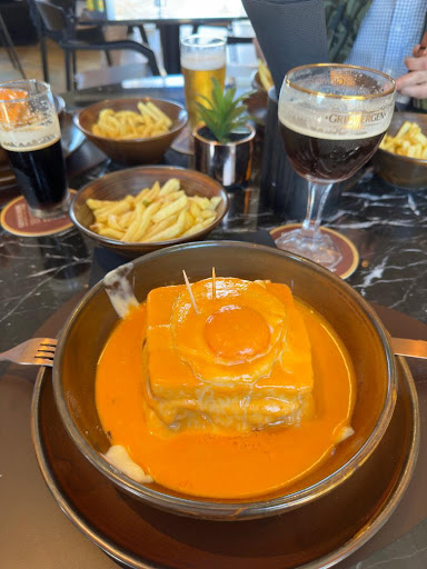 Estabelecimento histórico na Póvoa de Varzim, recentemente renovado, está muito bonito. O ambiente é bom mas faltava um bocadinho de vida, pelo menos acústica. Ainda não havia provado a francesinha, já tendo sido várias vezes recomendada. Francesinha Especial, basicamente, tem de carne assada e de lombo, opções entre os 13.5 e 15€, não é barato. Não havia muito por onde escolher e fui para a carne assada, na opção 1/2 francesinha. Não desgostei, mas não posso negar que estava à espera de mais. Vou visitar de novo para provar a de lombo. As batatas são caseiras, ponto super positivo. O molho, não surpreende, é um molho doce característico na região. De resto tudo me pareceu fresco, e bem confecionado, francesinha bem recheada. O atendimento é ótimo, mas deixo o conselho de não interromperem a meio da refeição a perguntar o que achamos, não fica bem. Voltarei para provar...