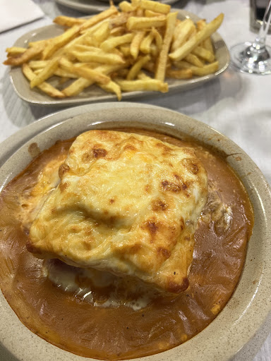 Read moreRestaurante de francesinhas, que tem muito mais para provar. Estacionamento A recepção do Xavier e o simpático atendimento do Álvaro, ajudam a colmatar pequenas falhas num sábado de casa cheia. O Xavier conhece a carta, tem cuidado nos pedidos, tem um sorriso franco, e muita, muita disponibilidade. Seria um Hotesse perfeito num qualquer Hotel de 5*. Funcionários como estes dois não há muitos. Preservem-nos. +Cozinha sem pretensões. Simples, como muitas vezes procuramos. Nada de aromáticas, ou guarnições com nomes estranhos. Proteína, uns pimentos, cebola, batata bem frita e já está. Sal no ponto. +Sem grandes flores, tem uma carta de vinhos. +Sobremesas caseiras.