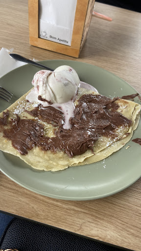 Faltavam ingredientes nas duas tostas, tomate nas duas. Os gelados para os batidos também eram escassos. O motivo era o atraso da entrega do fornecedor. Eram 14 e o Pingo Doce ali à frente, com ingredientes frescos que poderiam perfeitamente ser adquiridos em pouco tempo. O crepe de cachorro vinha com uma salsicha gelada e por cozinhar, ao que me foi respondido que era assim que era costume ser servida. A tosta de frango parecia ter sido temperada após a confecção do frango, tal era a intensidade do sabor. Estivemos perto de 1 hora à espera para sermos servidos. No final não nos foram descontados quaisquer ingredientes dos que faltavam e nem o café ofereceram, o que seria o mínimo de cortesia depois de ter pedido às 14h20 e termos aguardado imenso e term.os pago às 15h20. É pena, pois tem...