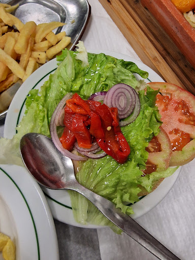 O bacalhau na brasa, com certeza que já estava algumas semanas congelado, todo fibroso, nada de lascas e nem se soltava da pele, não me pareceu muito assado para que tal acontecesse. Bacalhau de fraca qualidade... Existe um prato de especialidade de Bacalhau, talvez, este de 15€ é seja melhor, pois de 9€ não foi nada bom...
