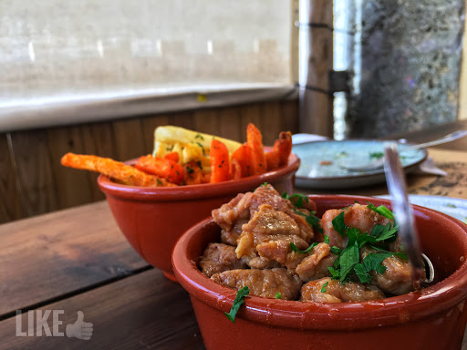 I ate there only one time. The experience was very good. I recommend you to book a table because the restaurant is small but very nice with a lot of wood features for remind you a mountain place or something likes that. The foods were very good. In particular the pork, quejo (cheese) and the “choco frito”. Very good. We ordered also the chickpeas but I don’t recommend them because are normal. Nothing special. The service was very kind and funny. The price is higher than ours expected but not too expensive. Normal. Summing up: -Location: 8/10 -Food: 8/10 -Service: 9/10 -Price: 7/10