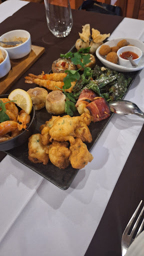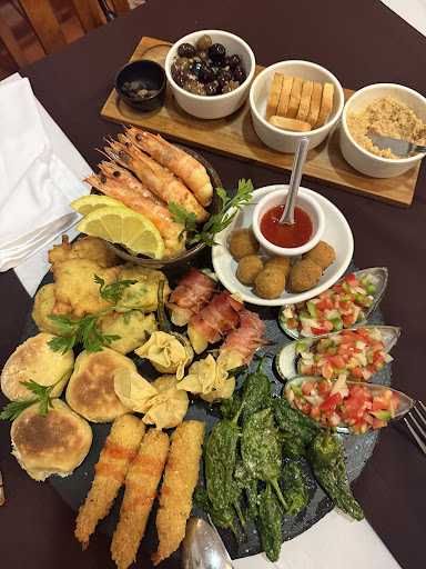 Read moreRestaurante calmo, acolhedor com música ambiente e um certo requinte. Logo de início fui surpreendido pela atenção profissionalismo e simpatia dos empregados. As entradas são simplesmente fantásticas. Gostei da imensa variedade , contraste de sabores e decoração das entradas. No menu podemos encontrar várias opções de carne e peixe. Pessoalmente a decisão nao foi fácil. A minha esposa optou pelo Bacalhau com broa e eu optei pelo naco de carne. A minha esposa ficou bastante satisfeito com o bacalhau e eu também com o naco. Reparei que teem também um peixe que é confecionado de maneira única sendo o mesmo coberto todo com sal e confecionado a frente do cliente. Esse será o próximo prato que irei experimentar sem dúvida Quanto a sobremesa não comemos porque ja não havia espaço no estômago 😅😅. Quanto a preços sinceramente não achei caro aliás até pensei que a conta fosse maior uma vez que o serviço e de excelência. Não podemos julgar uma fatura apenas pela quantidade de comida. Eu se quisesse comer num restaurante barato ia a uma churrasqueira ou a um restaurante mediano com diárias onde ha sempre grande confusão muito barulho. Pra finalizar dou 5 estrelas e a promessa de voltar em breve. Obrigado pela...