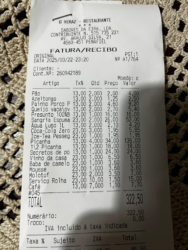 Read moreEm Penafiel, visitamos "O Veraz"... e estamos muito gratos que o destino nos tenha trazido até lá. Funcionários profissionais, educados, cuidadosos como é já uma raridade! Obrigada! Uma equipa organizada, comida de qualidade, bem servida, e com toque a "casa" que tornou esta experiência excelente e deu razões para voltar. Sobremesas caseiras e comida com apresentacao cuidada. Um ambiente calmo e acolhedor, decoração serena, musica ambiente de fundo, ideal para almoco ou jantar de família e amigos. Um bem haja a toda a equipa d'O VERAZ com a certeza que voltaremos e partilharemos a vossa localização....