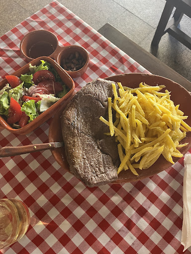 Optámos por uma posta de vitela para dois, mas assim que o prato chegou à mesa, o seu aspeto já deixava antever o pior. E confirmou-se: a carne estava dura, demasiado passada, seca e completamente sem sabor. Uma desilusão total. Nem as batatas fritas escaparam, mal fritas e sem graça.