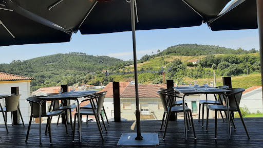Read moreIndeciso entre o 3 e o 4. Espaço muito acolhedor, simpático, mas ao mesmo tempo com distinção. Com uma esplanada espetacular e com uma vista muito bonita. Serviço de mesa simpático e competente. Em relação aos pratos, alguns não estão disponíveis. O polvo à lagareiro estava bem apresentado, tenro e saboroso. O naco de vitela (vazia) 3 molhos estava igualmente bem apresentado e saboroso, os molhos muito bons também, mas fiquei muito surpreso pelos apenas 5 minutos de espera, o que me pareceu francamente rápido no tempo de confecção dos pratos. Os preços dos pratos são os de esperar em relação ao espaço. Para a bebida escolhemos uma sangria de espumante com frutos vermelhos que não havia (os frutos vermelhos chegariam apenas no dia seguinte). Ficámos pela sangria de espumante normal que inicialmente trazia um toque a beirão mais elevado, prontamente reparado, ficando o sabor mais equilibrado. O que não achei equilibrado foi o preço da sangria (erro meu que nao consultei o preço) para um jarro de litro, com muita fruta, deu apenas dois copos. A sobremesa, uma mousse de noz, especialidade da casa, talvez o único restaurante em Portugal que serve (dito pelo empregado de mesa), era saborosa, mas esperava algo mais cremoso, não tão liquida. Preço justo. Em suma, um local agradável para se jantar acompanhado. Espero repetir para provar outros pratos e definir melhor...