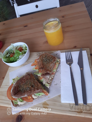 Despite COVID, I HAD a wonderful relaxing time. Firstly ViRiDi is implementing the safety regulations, regarding safe distancing, staff using masks, cleaning hands before entering and leaving and the number of clients at any time. Secondly, as always there is a variety of dishes on the menu to cater to all taste. Food is prepared according to order and the staff are very courteous. The atmosphere today was the kind of festive ambiance I love. I chose the Vegetarian tosta which came with a salad side dish of tomatoes and lettuce drizzled with balsamic vinegar. The dish was made of toasted grain bread filled to the brim with tomatoes and avocados on a bed of Hummus pate. The orange juice was freshly squeezed and the coffee was delicious. The total cost 7 Euros. Amazing...