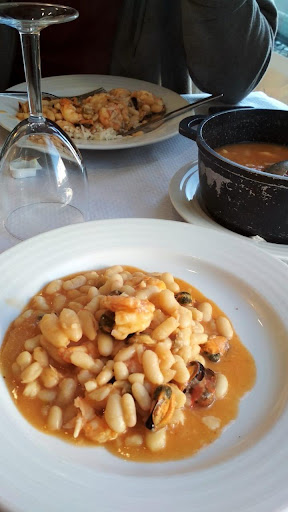 Muito fraquinho, tem bom aspeto e bom espaço mas não mais do que isso. A pass da net por cima da caixa é dos poucos pontos favoráveis. No WC não tem luz sobre o único lavatório. Na parte dos homens apenas uma sanita com o autoclismo em mau estado, o chão molhado e um ferrolho da porta que mal se mantém. Pedimos caldeirada para 2 pessoas. Quem quer caldeirada espera provar vários tipos de peixe em pequenas quantidades. Não foi o caso, veio uma caldeirada para 2 pessoas com 3 postas de peixe grandes. Não ia ser eu a andar a estrincaçar o peixe com a colher dentro da panela, por isso a experiência da caldeirada é basicamente tirar uma posta para o prato, um camarão e comer com batata e cebolada. Não é isto que espero quando peço uma caldeirada. Numa caldeirada a sério quero 2 torradas de pão tradicional que servem de base ao prato e que ensopo com diversos pedaços de peixes variados, batata, cebola, tomate e pimento. Aqui houve 3 postas de peixe grandes, 3 camarões e uma pele de raia, numa panela com batata, cebola, pouco tomate e pimento. Sobremesas muito pouco elaboradas. Nada me faz voltar cá. P. S. : Uma hora...