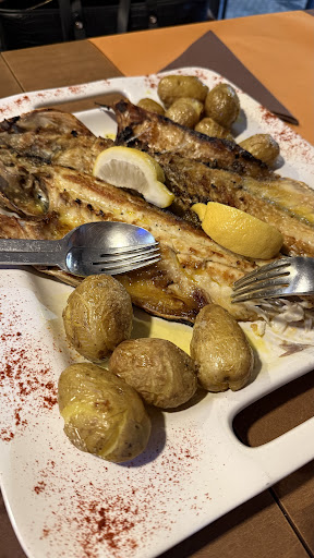 This was bad in so many ways I don’t even know where to start…When we came we got the appetizer (the bread from the day before, olives, cheese etc.) but we didn’t get the menu😅 So after 10 minutes when we asked, the waiter brought us menus… when we chose from a few foods on the menu (which is not a bad thing) they told us they didn’t have 2 of them, so we were like okay, we’ll choose something else. Confusing thing for us was that to other guests they were showing the fresh fish they had today on the menu, but we were told there was no fish left that day. But that could have been a misunderstanding. After 75 minutes in the restaurant we got to the main course , firstly we got the side dishes (rice, fries and beans) and after 10 minutes they were on the table , the waiter came and told us they were for the other table, not for us, and he simply took them and he straight gave them to other people, not knowing if we touched or ate any of it 😅 Sooo at this point we were just trying to stay positive, hoping that at least the food will be good. But when the steaks finally came, they were gummy and impossible to chew. I really tried, but unfortunately it had to end up in my napkin, so we had to return them. The waiter’s reaction was not very polite at first, he brought the meat back and tried to show us how the meat is actually good, but you know, when 3 people tell you that the meat is not well cooked, there must be something about it…then we asked for the bill, the first one we got was with the steaks included and then, right after, he gave us the other one, saying that he paid for the steaks, which we appreciated of course, the problem was the way he was speaking to us, like we did something bad and he had right to be angry at us 😅 Him not saying goodbye back to us when we were leaving was just a cherry on top of it all. We came here because on TripAdvisor it’s supposedly a number 2 restaurant in Peniche, but that might have been the true some time ago, what we encountered today was far from a good quality restaurant.