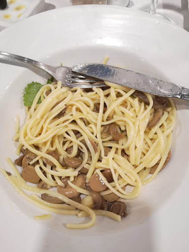 Se és vegetariano ou vegano, não visites este espaço! Há, em Peniche e arredores, opções mais económicas e com boa cozinha vegetariana. Estive num jantar de grupo neste restaurante pela primeira vez e foi-me dito com antecedência que haveria certamente prato vegano (cogumelos à bolhão-pato). Infelizmente, é claro que o Proprietário não conhece a cozinha vegetariana (seja ela estrita ou não). Não houve qualquer esforço para que tivéssemos o mesmo tipo de menú que as pessoas que comeram peixe ou carne. Não tivemos direito a uma única entrada (isto se não contarmos pão com azeitonas), não havia sobremesa para nós, mas felizmente pedimos fruta e recebemos - esta foi a parte mais positiva do jantar. O prato vegano, dito Linguini com cogumelos à Bulhão Pato, surgiu como um monte de linguini ensopada em azeite dos cogumelos de lata que foram salteados com 2 folhas de coentros, tal como mostra a fotografia, apesar de ter sido tirada já depois de ter remexido o prato, enquanto procurava por mais alguma coisa na pilha de massa... Houve bebida à descrição sim, que demorava imenso a chegar à mesa, e não consegui beber mais de 3 copos de sangria, já que faltava. Então, por pão com azeitonas, por cogumelos de lata e massa e sobremesa tive de pagar 20€. Claro que o valor foi estipulado de antemão, mas mesmo depois de mostrar o meu descontentamento para com a empregada assim que me pousou o prato à frente, quando fui pagar, perguntei ao proprietário se o meu prato seria os 20€, o qual ele respondeu que sim, e nem se quer questionou o porquê de lhe estar a perguntar isso ou se tinha gostado da comida. O restaurante alegou depois, em resposta a uma critica semelhante, não ter conseguido de forma alguma cogumelos frescos. Com toda a certeza teria mais que tempo para pensar em como confeccionar prato vegano para apenas duas pessoas do grupo, que valesse o valor que se pediu, com legumes, soja texturizada, tofu, imitação de carne, leguminosas, etc etc, que nunca falta nos supermercados em Peniche. Admiro que o restaurante tenha uma política de evitar o desperdício alimentar e é verdade que não há muita gente a pedir este tipo de pratos. Mas onde haveria desperdício se fosse ao supermercado comprar porções frescas de alimentos para confeccionar para estas duas pessoas (sendo que o jantar estava marcado)? E... Adivinhem, porque é que não há muita gente a procurar estes pratos? Porque os restaurantes convencionais não se esforçam em satisfazer estes clientes! Quem vai sair para comer massa com cogumelos?... Em relação ao bacalhau com natas e ao prato de carne, os meus colegas afirmaram ser muito bom. Fica a minha crítica a este estabelecimento, com esperança que possam olhar para esta situação e considerar ter no mínimo 1 prato vegetariano e 1 prato vegetariano estrito (vegano) que sejam equiparáveis aos outros pratos que servem de comida típica portuguesa. Entendo que não é fácil para pessoas que sempre cozinharam comida tradicional tenham o desafio de confeccionar este tipos de pratos, mas com alguma pesquisa rapidamente se encontram. Não sendo chef ou se quer cozinheira, com 0 experiência em restauração, já confecionei durante varios dias almoço e jantar para 30 pessoas que incluía comida tradicional, mas também pratos veganos, outros sem glúten, e outros estritos em peixe; por isso por experiência própria sei que...