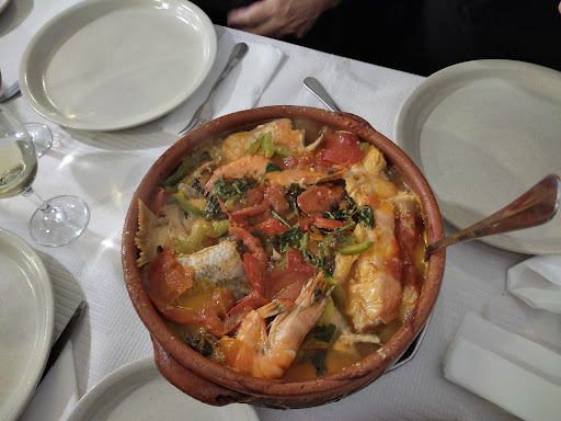 Read moreChegámos ao restaurante à hora reservada. Ficámos numa sala onde simplesmente não conseguimos ter uma conversa entre os restantes membros da família. A acústica desta sala é simplesmente inaceitável. Não costumo reparar nestas características mas era surreal. Não conseguia ouvir a pessoa ao meu lado. Passámos a refeição a gritar! Passados uns bons 20 minutos depois de estarmos sentados ninguém aparecia para fazermos o pedido. Tivemos que chamar alguém do staff. Caso contrário penso que ainda agora lá estávamos à espera. Pedimos para entrada camarões cozidos. Esperámos mais 30 minutos. Lá apareceram os camarões. Moles, ainda quentes e com umas pedras de gelo em cima para ver se arrefeciam... Intragáveis. Voltaram para trás. Passados 20 minutos apareceram os pratos principais: lulas grelhadas, sardinhas e caldeirada. Os 2 primeiros são bem servidos. Já a caldeirada vem num tacho grande em barro mas apenas com 2 variedades de peixe. Batatas existem sim em abundância. Lamentável. Terminados os pratos principais, esperamos mais 40 minutos. Lá tivemos que chamar novamente um dos colaboradores para fazer o pedido das sobremesas e cafés.