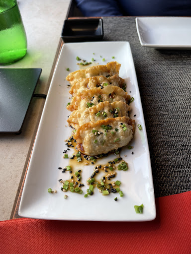 I ordered the salmon sashimi - I had to ask for wasabi for this as it did not come with the meal? I also ordered both the tuna and salmon tetaki (not properly seared or crusted with sesame - basically still sashimi - and so was not what was advertised), the fish taco starter was very bland and without flavour, the gyoza were too salty and usually you can’t go wrong with gyoza. Chicken skewers were fatty and tough.