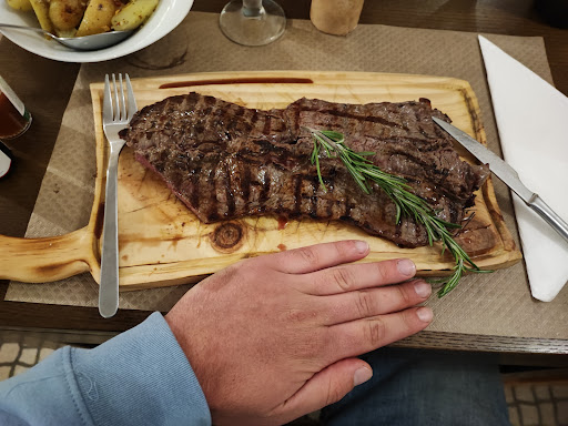 We had an AMAZING beef steak 3-pepper sauce done medium, that deserves a million stars, and a cod with potatoes in such a portion we could not finish. The fish was delicate and greatly seasoned, the potatoes were awesome. Before you order wine, you get to taste it, but they know what you want depending on your order, so the first taste is gonna be the final one... Their wine is delicious. The service is absolutely stunning - fast, kind and overall nice. They don't speak much English, but they are willing to try (we solved everything). And they call you a local taxi if needed :) I would come back any day.