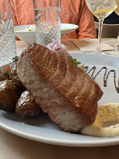 We enjoyed the spicy shrimp as a starter, with a balanced level of heat – make sure to get some bread to soak up the sauce. The chopped tuna with orange also paired perfectly, but bring your appetite so you can still enjoy a proper main course! The beef steak was of the highest quality, the crispy fat edge enhanced the cowboy style, and the side dishes were also given the right attention. The tuna steak was a dream, one of the best we’ve had in Portugal.