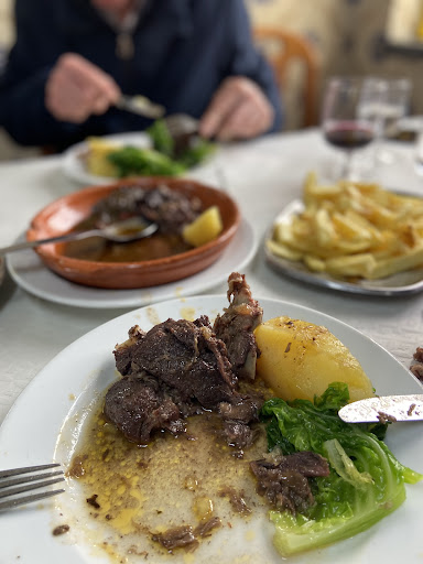 This is an unassuming roadside restaurant, which at first we thought was a parking lot, from all the cars that were parked there, we were welcomed near the entrance by someone selling olive oil and wine and another van selling winter clothing. Inside was a full room of serious roadsters who seemingly flock here as we all once did to mom's kitchen, generous portions of beef and pork stews with pitchers of wine in abondance, so we asked for a table and we were seated rapido presto, and although we did not speak portuguese the lady and gentleman looking after us were just plaiun helpful kind and jovial, we ordered the daily soup of chorizo and pork with beans, Momma where are you? It was just good aond conforting, then followed it with a pork and a beef stew, accompanied by well cooked cabbage and potatoes and accompanied by a great pitcher of local country wine, What was intended to be a pit stop for lunch turned into a 3 hours lunch which we enjoyed thoroughly. A must stop if traveling by road from...
