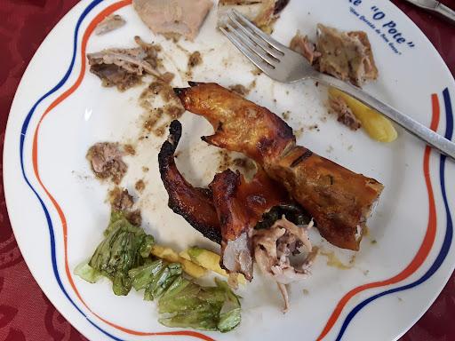 Read morePrimeira vez a ir ao Pote dos Leitões e foi um misto de sentimentos. Fomos recebidos por uma senhora que perguntou se tínhamos reserva, que não tínhamos, e então teria de ser outra pessoa a dizer qual era a mesa. O restaurante tinha meia dúzia de mesas com pessoas e calhou-nos a mesa mesmo ao lado onde o senhor Silvio faz o corte do leitão e afins. Foi um pouco desagradável porque quase não dava para nos ouvirmos um ao outro, tanto que nem a senhora a explicar-nos a ementa conseguimos perceber bem. Pedi bacalhau à casa pois fui ao engano e não sabia que basicamente só servia leitão, my bad! E veio também leitão para a mesa, para quem gostava. Aguardámos um pouco, com a entrada de pão ali ao lado a tentar a vista. Alguém experimentou o pão e nitidamente não era do dia, estava extremamente duro para os 1,80€ que tivemos que pagar no fim. Chegou o leitão e o bacalhau assado e tenho a dizer que estavam ambos muito bons. Não gosto de leitão mas provei e pareceu-me ok, quem comeu disse que estava muito bom, mas que ainda assim não era o melhor, fair enough, gostos são gostos. Terminámos de almoçar e esperamos uns 30 minutos para que nos viessem levantar a mesa. Já agora não percebi para que foi tanta confusão no início a dar-nos a mesa visto que o restaurante não teve novos clientes. Passado esse tempo lá pedimos o café (era muito bom!) e seguimos para o balcão para fazer o pagamento. Pagámos e quando estávamos a sair reparamos que tinham sido cobrados dois menus de leitão a 27,50€ cada, quando o meu bacalhau era 22€ e o leitão consoante foi pedido eram 23,50€. Voltámos atrás e reclamámos, pediram desculpa e devolveram a diferença que eram basicamente "só" 10€! Deixo fotos da ementa porque foi impossível encontrá-la online. Conclusão disto tudo: ir só se gostarem de leitão e verificar bem o que está na conta...