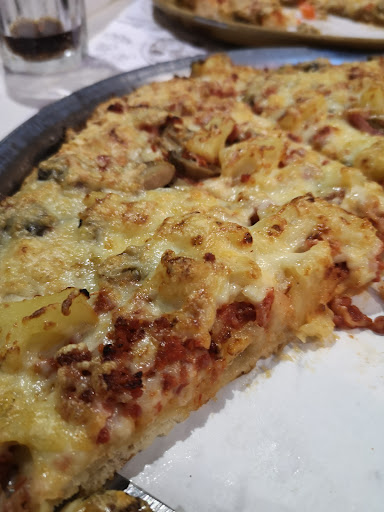 Read moreIt's not DiGiorno, but I wished it was. The crust was of preserved bread and had a bland dense chew to it akin to frozen pizza in the states. The cheese was good. But the toppings (mushrooms, olives, peppers) of the "3 sentidos" pizza all seemed to originate from a can which was disappointing in flavor and appearance, especially given the dense vegetation and superfluous gardens of the region. And the chorizo was far too finely ground for my preference. The dishware and pizza board did offer a nice presentation at least.