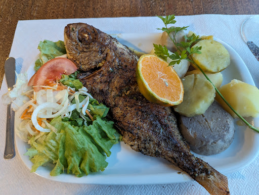 Read moreThis restaurant can be easily seen (on the coastal side of the road) from the 'northern axis' EN1-1A road that goes along the northern coast. We stopped here after driving to Sete Cidades in the morning. It is modern with full-length glass windows over two storeys - the upper floor does not seem to have the air-conditioning on but has better views and a balcony (when we visited in late October). There is free parking outside for about 6 cars as well as parking spaces on the road. It seems to be filled with a mix of tourists driving by and locals. The starters were the highlight and we had grilled limpets (looked great on the serving tray) and blood sausage with pineapple (an interesting combination and the sausage is juicier than black pudding) - both seem to be famous and deservedly so. We shared one main of seafood with rice which was more like a stew - not very tasty but a huge portion. With soft drinks, it came to about 45 euros for 2 people. The staff were friendly and they have a...