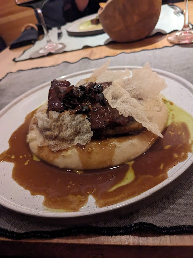 Read moreThe good and the bad: Great friendly and professional staff. They know all the details of the menu and can guide you if there are any questions. You really feel you have all their attention. Dining room has a severe layout problem. Also there is a circular table that due to the size the guests end up far away, as a consequence they have to speak loud... Then everyone has to speak loud. The room ends up noisy with difficulty in having a conversation and destroys the cosy intimate inviting felling that the decor suggests. Ingredients are hit and miss, some dishes are very good due to the quality of the meat (pork cheeks) and others have sub par ingredients (Vazia steak, fish hotdog). Sauces are perfect but cannot maintain the quality of the dish if the rest is sub par.