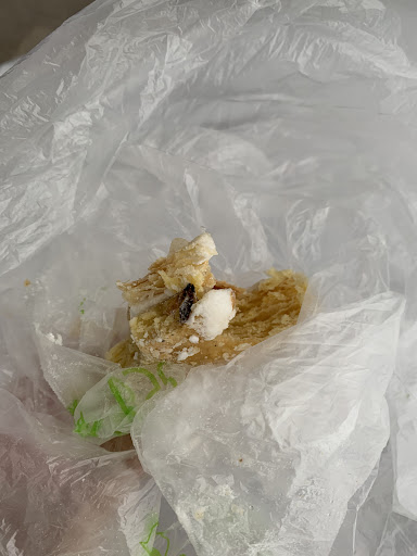 Locating the bakery was not easy at night as I was in the quiet area alone around 9:45pm and there was no sign advertising the business. The bakery was very dimly lit as if off and windows were textured so it was impossible to see beyond. The only confirmation it was the bakery was the home-less guy across the street noticing my confusion and informing that it opens at 10pm. I came back shortly after since it was recommended and my last night in the island. Proof that the bakery was a local mainstay showed people were serviced right after their 10pm opening ordering several goods and a few already lined up to order. I left the bakery with the bags tied tightly so there was no way the pest got in until I was ready to eat.