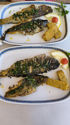 The waiter was offering and showing local fresh fish on a platter that were supposedly only available on that particular area. We fell for it and decided to give 2 of them a try with a small mistake by not asking the price in advance. The smaller fish was delicious but the other one was problematic due to the large amount of fishbone. The price was 22 euros per person which I considered a bit pricy considering how messy the overall experience was. After paying, the server even gave me a pat on the shoulder making me feel like he managed to make a good deal out of us. Always ask for the price if something is not...