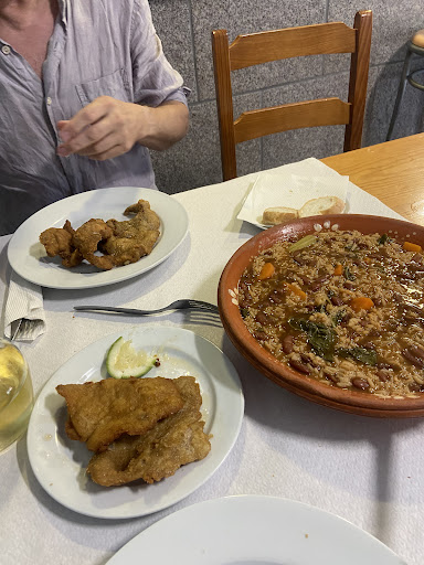 Where the policeman eat, and all the local tradesmen, I was the only woman in this busy lunch-stop apart from the bar staff. A proper hearty Portuguese workers lunch - breaded pork, a massive bowl of tasty rice and beans that could have fed four people, bread, 1/2 litre of wine, plus coffee for €18 for two. You won’t feel cheated....