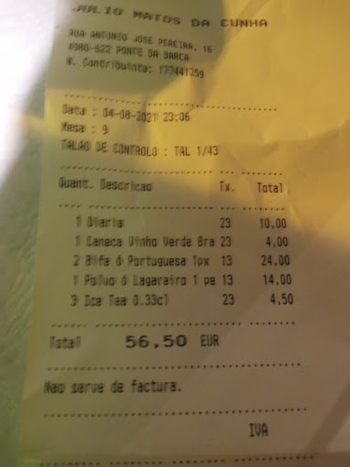 Faite attention en mangeant là bas car les additions sont modifiés ! Regardez bien le prix de votre plat de départ puis regarder sur l’addition (le prix est modifié que sur les doses). Aucun moyen de communication avec les serveuses, cuisinières... Les assiettes ne sont absolument pas remplis pour pourtant des prix élevés. Différence entre les portugais et les touristes (prix + assiettes).