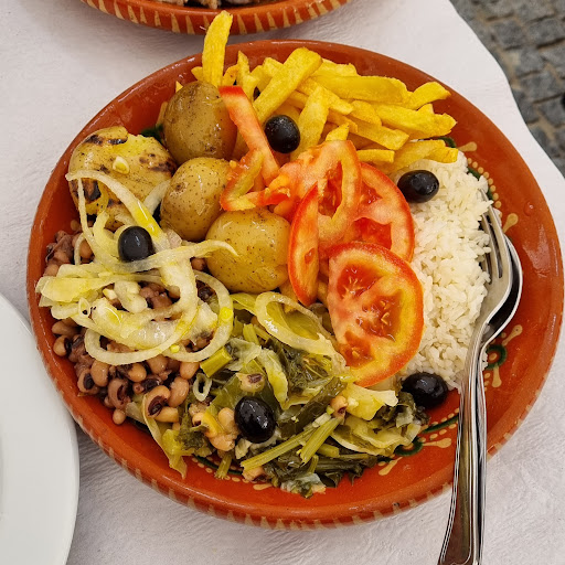 Read moreThe food and the house wine (vinho verde) were delicious. I really enjoyed their vegetarian mixed plate. It's rather difficult to find vegetarian / vegan options in traditional Portuguese restaurants around this area - usually they'll make a plate of potatoes, rice and salad only - but here they also served black eyed beans and Portuguese cabbage. Unless there's some hidden butter, this dish is vegan. We have been here many times and my father has ordered different dishes, all were very good including the Portuguese Cozido. The portions are big. We also loved the house vinho verde. I'd recommend going on a weekday when it's less busy, the food is less rushed and better. Definitely do not come on a fair/festival day, they'll be in over their heads and you'll be queueing for an hour or more before getting a table (we waited almost 1h30...