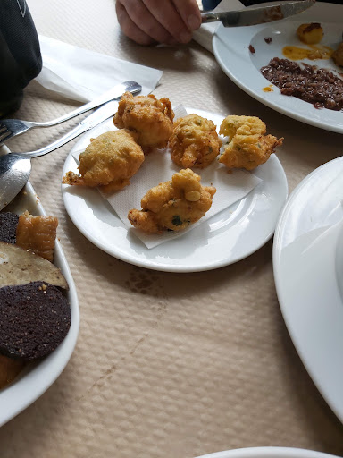 O restaurante Fátima Amorim estivesse na minha lista, confesso que não era o primeiro. O n.° 1 da minha lista para minha sorte estava completamente cheio e só tinha vaga dali a uma hora e meia, por isso fui para o seguinte. Embora estivesse cheio também, o tempo de espera não era tão grande e por isso ao fim de 15 minutos lá fomos pôr os pés debaixo da mesa. Sala renovada simples mas com um certo requinte, nada demais, mas diferencia-se dos restantes. As cadeiras, mesas e toalhas acompanham a xiquesa simplista 😁 O serviço não é demorado, tendo em conta que comemos sarrabulho. O bacalhau da mesa em frente também tinha muito bom aspecto. Relativamente aos funcionários são coordenados e estão sempre em roda viva mas de forma ordeira e organizada para que o cliente se sinta bem servido, quanto à simpatia dos mesmos, embora só um ou outro, mais simpático, mas nunca antipáticos ou mal educados. O comer, sarrabulho, devo dizer que o arroz 🍚 estava muito bom de sabor e a consistência do arroz no ponto certo, parecia que estava a comer papas de sarrabulho, o sabor era autêntico. Os rojões..., são rojões, estavam bem temperados, acompanhados de fígado, a tipica fatias de sangue e broa, tripas e batata. No geral a comida estava num tempero ideal, não muito forte, nem fraco e, ao contrário de alguns lugares, não estava muito temperado de sal. As doses são muito bem servidas, ou seja, uma dose dá para 3 pessoas que comam bem. No final a restante comida pode ser levada para casa, o senão, e que deviam alterar, é que somos nós a colocar a comida nas covetes para trazer para casa e, confesso que fiquei bastante desiludido com tal situação até porque os funcionários colocam os recipientes na mesa e "safa-te". A meu ver, a colocação da comida restante para trazer, podia muito bem ser feito na cozinha e depois colocavam na mesa numa saquinhoa, cobrando sempre pelos recipientes e saco. Acrescento ainda que tal situação estraga aquele requinte que falei no princípio, por isso se vos acontecer a mesma situação peçam para o fazerem na cozinha, pois o preço a pagar não é assim tão pouco para não o fazerem. Quanto ao preço, uma dose e meia de sarrabulho acimpanhado de rojões e 2 doses de rojões simples, uma garrafa de vinho da casa, 4 sumos diversos, 2 gelados e 1 descafainado ficou por 132 euros, ou seja, uma média de 20 euros +- por pessoa. No final as crianças têm direito a um chupa-chupa e os adultos...