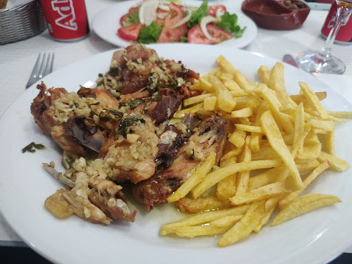 Read moreVamos conduciendo hacia Cádiz desde Vigo y este lugar tenia la ubicación perfecta para parar a comer sin desviarnos de la ruta. Pedimos la gallina tostada y vaya, qué rica. Cantidad muy generosa (medio pollo por persona) acompañada de abundantes patatas y de un plato de ensalada. No me extraña que sea uno de los platos más populares de la casa. No sé si se aprecia en mi foto pero la carne va cubierta con un aderezo de ajo, perejil y aceite de oliva virgen. El ajo es suave y el aderezo le da mucho sabor.