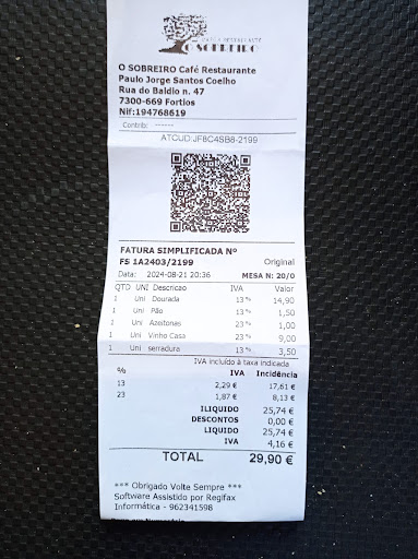 25€ menu, I made the mistake not to choose the menu of the day... but even though it's way too expensive for this kind of place... I'm quite confident portugueses drivers would never pay this price. Don't go there with a foreigner's face or it seems that you'll be ripped off. And if you're a truck driver avoid it, there so many other places to stop, especially in Portugal, where they treat you well and have fair prices.