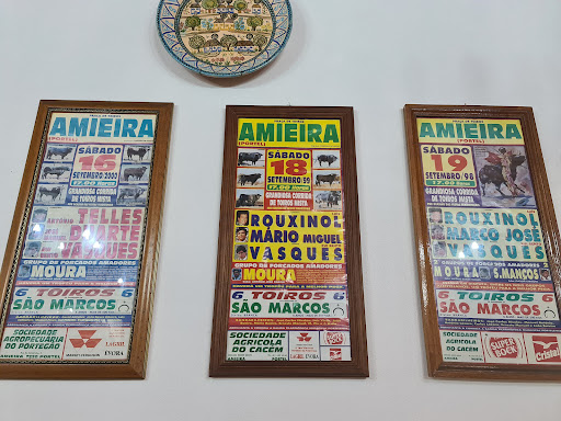 This is a restaurant in the alentejo area near Alqueva. Their decorating theme highlights the bullfighting culture of Amieira; many bullfight posters and the televisions play bullfight reruns so keep this in mind if you dislike this - there is seating outside without television views, but there is air conditioning inside which is nice if it's a hot day. They have a menu for 20 euro per person that includes fresh sliced presunto, bread, beverage of choice (that seems to be unlimited - they opened a bottle of wine for the 2 people at our table who wanted wine). The entree is a choice of bacalhau à casa, grilled pork loin, or choco frito (fried cuttlefish). Served with fried potatoes and salad. Includes a delicious ice cream dessert (chocolate and vanilla) and a digestivo - we were so full we didn't take it but I think it was an aguardente. the service was fantastic and personal ad it was a great meal after passing the morning at...