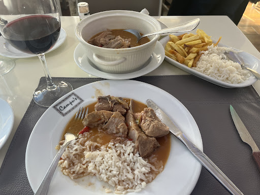 Since moving to Portimao we’ve been scouting for more local restaurants as an alternative to the scores of touristy eateries. Just by chance I happened upon Campu’s which is on N125 just as you’re exiting Portimao on the way to Alvor. We visited and were quite impressed! Returned tonight as it’s one of the restaurants that remains open when everyone else closes up for the winter season. What a Dinner! I had the Pork cheeks in red Wine in a Copper Pot, my wife had a delicious fried Robalo and my step daughter, the Lamb Chops, lots of them! The Pork Cheeks were just mouthwatering. I know, some may not think that cheeks would be appetizing but,,,,fugettaboutit!!!!! Mouth watering delectable!! Did I say mouth watering and melts in your mouth? We chased it all down with a lovely bottle of Vinho Branco Seco and each had delicious in-house made desert. My step daughter wanted an Espresso Martini which they’d never heard of so what did the Server do? She went back to the bar Googled it with her coworker and kept trying till they got it right. Yes, that’s the level of attention you can expect. All that for 85 euros! Needless to say we shall be repeat customers for some...