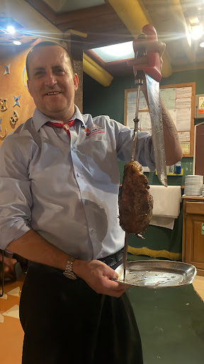 A group of lads out for dinner and of course it's going to feature meat. Well, you won't be disappointed here. Thoroughly welcomed by the enthusiastic staff we had a large table with a very important marker which if green up means delver food or red up means I am full. You can get extra items to accompany your dish from the central isle such as noodles, rice, potatoes and even a selection of fish/shellfish. But back at the table you will be visited by multiple skewers of cooked meats which is sliced off onto your plate. All cooked well and succulent of good quality cuts. Only issue was I was so meated out, I went veggie for 2 days after! House wine was fine and to finish off they offer you a sweet liqueur poured from up high (plenty of photos of that if you look). I was even “treated” to a direct pouring into my mouth as part of the fun. Also to watch was the waiter loads up a large tray of spent plates and runs through the restaurant to the kitchen with great balance. All in all, a great place for all you can eat with emphasis on meat and a great atmosphere. Well located across the road from the Portimão...