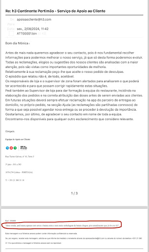 Não é crítica ao consumidor, não é crítica ao estabelecimento, não é crítica ao parceiro de entrega. Mas a dinâmica não está a funcionar (admitindo que eu também não apresento soluções). Contudo, após ter feito uma anterior crítica no calor de um momento de frustração, pensei em deixar esta reflexão… pois o estabelecimento não ignora a opinião dos seus consumidores (mesmo quando esta é estapafúrdia - o comentário em questão vai destacado nas fotos, assim como a resposta do Apoio...