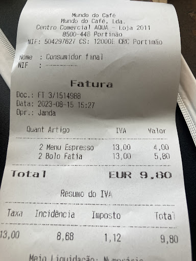 Went there today,the girls behind the counter were totally disinterested and instead of a Carioca coffee served my wife with an espresso, a cold one as well. If she wanted a cold coffee she would have ordered one! A coffee is supposed to be hot or at least warm. I specifically ordered it to be escaldado. The meia de leite I ordered was also cold. Looks like they are trying to save on their electricity bill! If so how about saving the customer some pennies as they are the most expensive around. For example a miserable thin slice of cake costs euro 2.90. Get real! How about a refund for the quantity/quality and lack of interest by the staff! They have a branch in the Continente shopping centre as well. Never had any problems with the staff there although the portions are the same. This cafe is overpriced-...