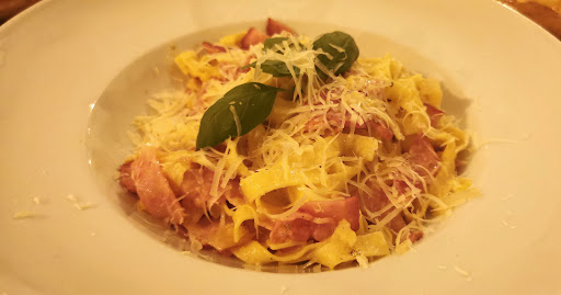 The waitress and waiter were very attentive throughout our meal. A complimentary entree of olives with bread were welcome and tantalised our taste buds for the main course..... Tagliatelle Carbonara and my partners choice of Penne al Arrabiata. We'd ordered the Focaccia Mozzarella as a starter. All the dishes arrived hot and were exquisitely tasty......I love Carbonara and this was the very best I've ever tasted ( and I've had an inordinate number of Carbonaras in many places around the world including Italy!!)...flavours were strong, not wishy washy, and the ingredients used were obviously carefully chosen and prepared with care and love. The Focaccia Mozzarella was lightly drizzled with oil and herbs so was allowed to bathe in the cheese and dough it's based on. A taste explosion on a plate😍 We dared to have a dessert as everything before it had been so good.....no disappointments there either.....I opted for the Bolo de Chocolate, my partner chose the Panna Cotta, and again the flavours just hit your taste buds with a vengeance and melted your palate into submission. This experience was perfect and the cost was unfathomably great value.....only €36....😯. Al Fresco is a hidden gem that should be higher rated than the reviews may lead you to believe......Meditteraneante is nothing compared to Al Fresco for Italian cuisine in the Alvor area....we will be back several times before we have to leave...
