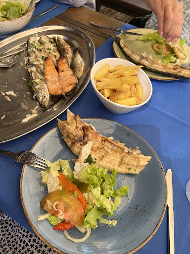Read moreWe went to this restaurant because there was a long queue on the one next to it which we wants to go inicially but we were not willing to wait . The atmosphere looked nice and they had i saying on the window stating that they could be the not so cheap restaurant but they cared about customer service ! So we decided to enter has we were intrigued by that kind of honesty. The first waiters were ok not amazing but the second one ( the guy with oranged framed specs 🤓) started to yell at us when he wanted to pick up the diches and we said that some of them we were still eating! Super super rude ! The manager shouldn't allow to have this kind of people serving on the table ! The bill was expensive... that we already knew what we didn't know is that they would charge 2.5 euros for sole slices of bread when the restaurant next door was charging 0.75 ! I do not recommend this place specially because of the rude waiter the fish was ok but not worth the 32 eur...